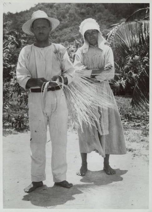 Destination Saint-Barths is a private site and has no link to the official sites of the Collectivité de Saint-Barths. A few years ago, as you visited the different districts of the island, you could still see some ladies wearing the traditional headdress. Between the carriage and the straw hat in Corossol and Colombier and the panama in Cul de Sac, Marigot or Vitet, these caps are all a symbol. The carriage or Quichenotte, a large white cap, is distinguished in 2 categories: The platinum carriage made of braids sewn together, the stick carriage made of thin wooden rods inserted in the spaces created for this purpose, and the cape (which no longer exists except in the Gustavia Museum) made of blue fabric for work and black for outings.