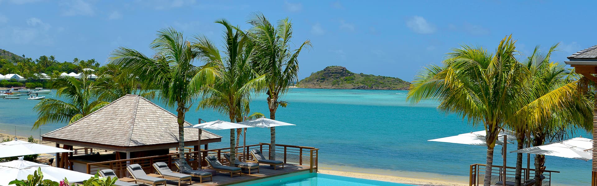 HotelsIn a natural setting of rare beauty, the whole spirit of Saint-Barth is concentrated here: elegance, tranquility and discretion. On the bay of Grand Cul de Sac, along a fine sandy beach, the 5-star hotel Le Barthélemy is an exceptional place. Parisian chic and the soothing beauty of Saint-Barth blend with refinement to create a unique and exclusive experience, a dream full of emotions. 44 rooms and suites, two luxury villas by the sea Le Barthélemy offers 44 rooms and suites, as well as two adjacent full-service villas. Designed by interior architect Sybille de Margerie, you will find a sober and bright setting, made of natural materials, with a thoughtful integration of Hermès' technology and equipment. The property Additional facilities include restaurants & bars Aux amis Restaurant and Aux Amis Plage, a Rooftop Bar Whiskey Tango Foxtrot, a waterfront overflow pool, a vast water sports program, a 24-hour fitness centre and Le Spa du Barthélemy (personalized massages, hammam, sauna, Nordic baths), in collaboration with the international skin care expert, La Mer. Highlights: 5-star hotel spread over a 180m long beach The most: 80% of the rooms enjoy a sea view